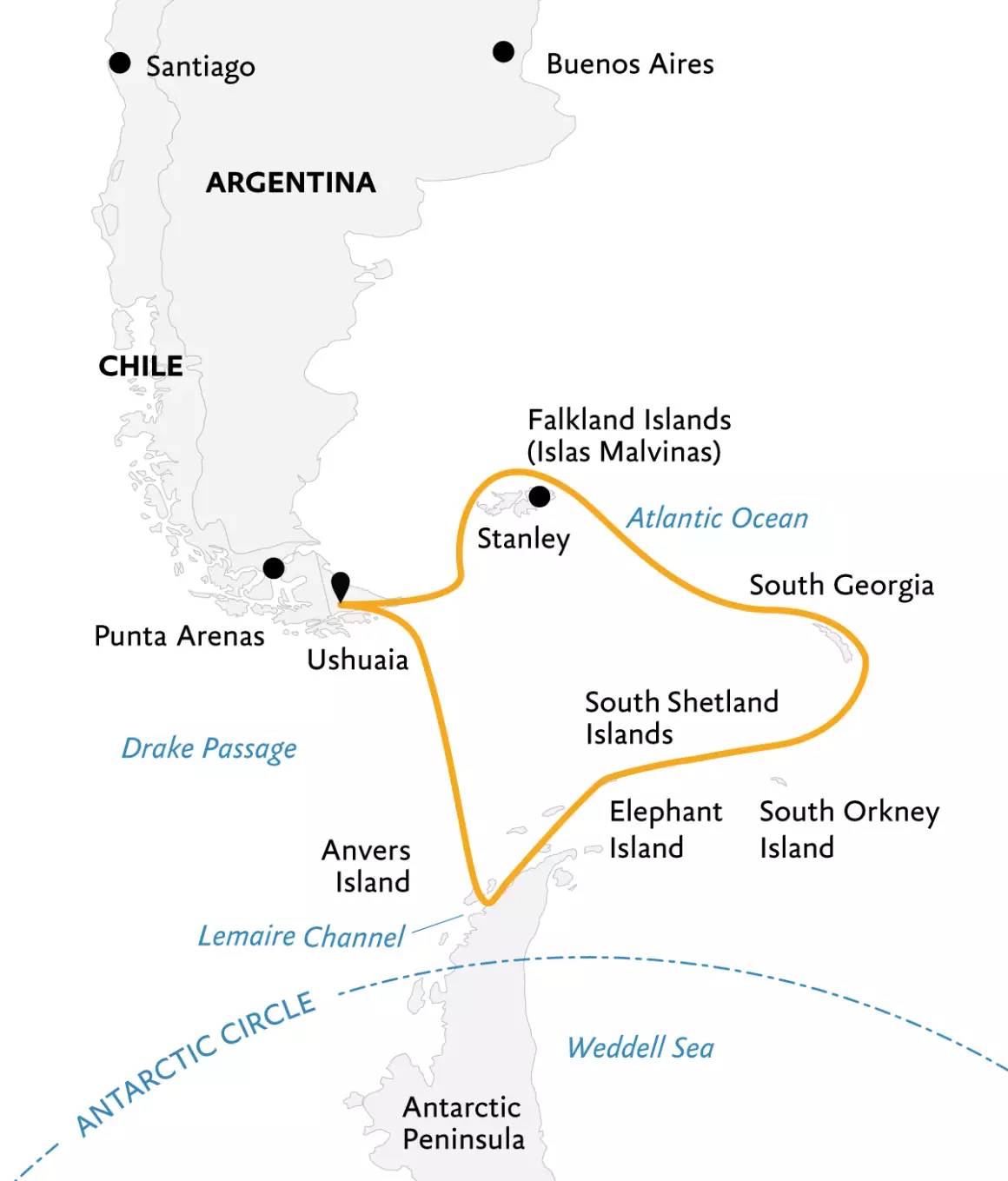 20天三岛行程日程(福克兰群岛+ 南乔治亚岛+ 南极大陆)