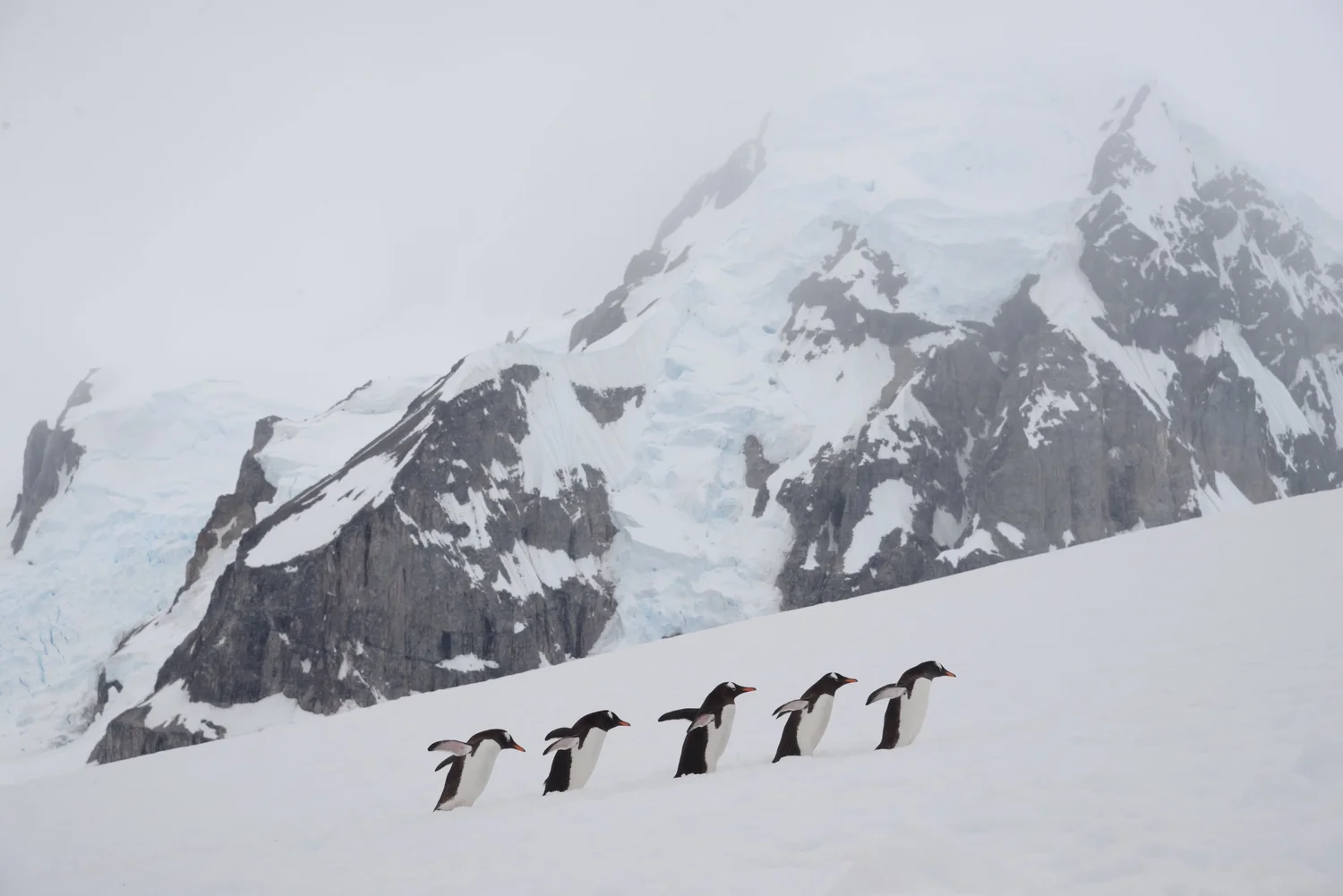 因为周围的山脉有许多冰川的裂缝,所以从顶部远眺,景色十分壮观。丹科岛是1600对Gentoo企鹅(相关文章:南极单岛行程最常见的企鹅?)的家,它们通常会在较高的山坡上繁殖。