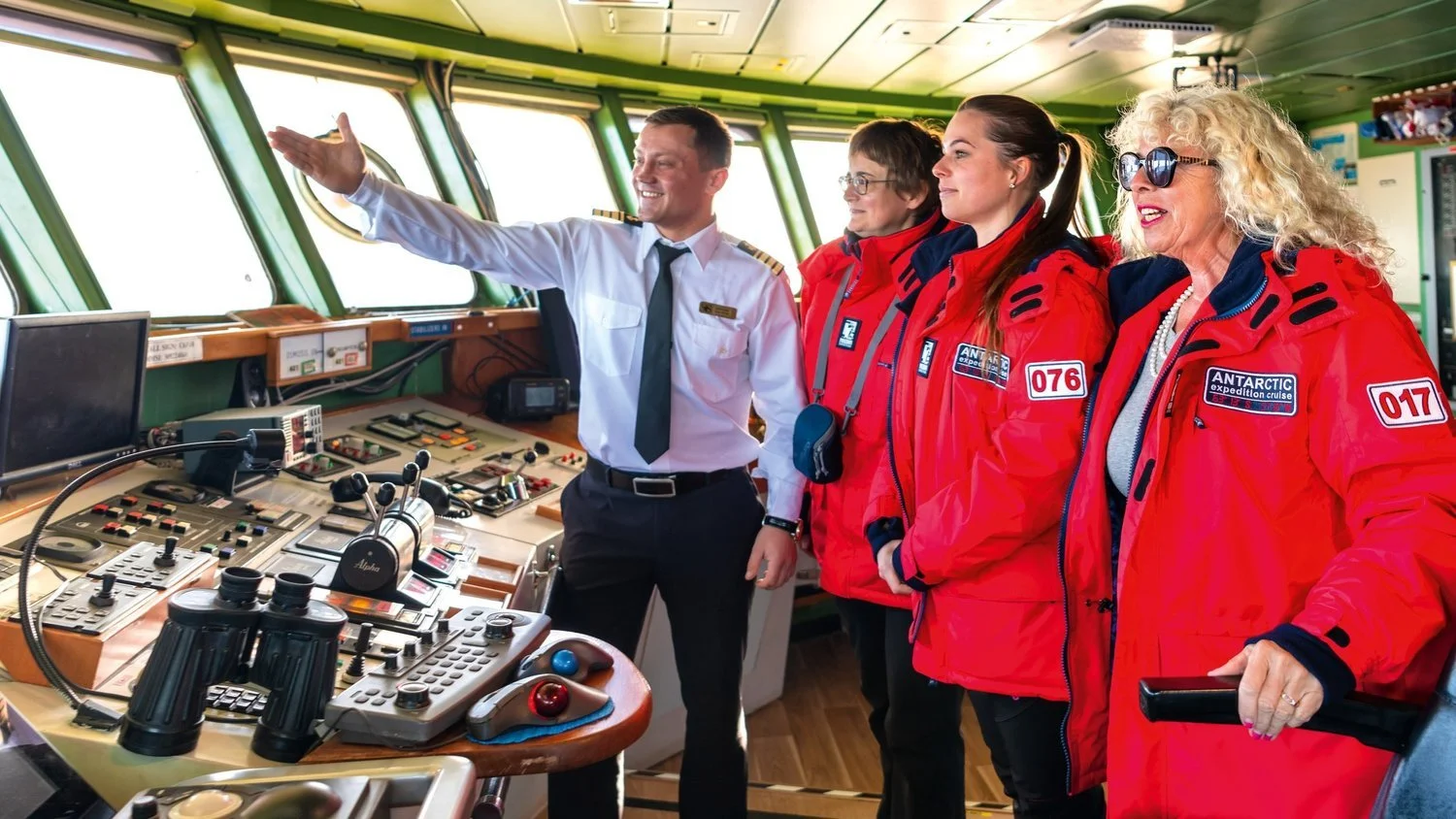 登船之后,船公司会安排欢迎仪式以及提供迎宾饮料,邀请乘客在前台办理完登船手续(领取房卡及绑定信用卡作为船上消费使用)后,来到船上的大厅集合,和本次航程的各组工作人员以及船长碰面。此外,探险队员会请所有乘客前往登陆准备区,试穿极地大衣(如有提供)及登陆使用的雪靴。